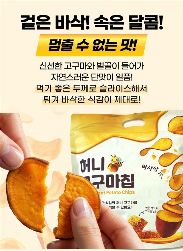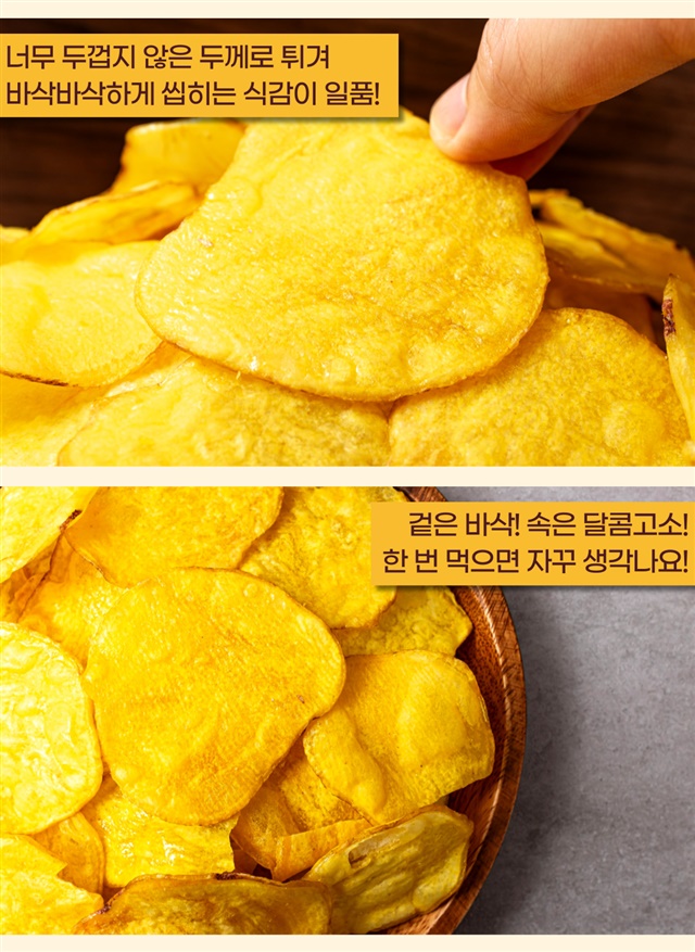 딱 먹기 좋은 두께로 튀겨 바삭달콤한 꿀 고구마칩