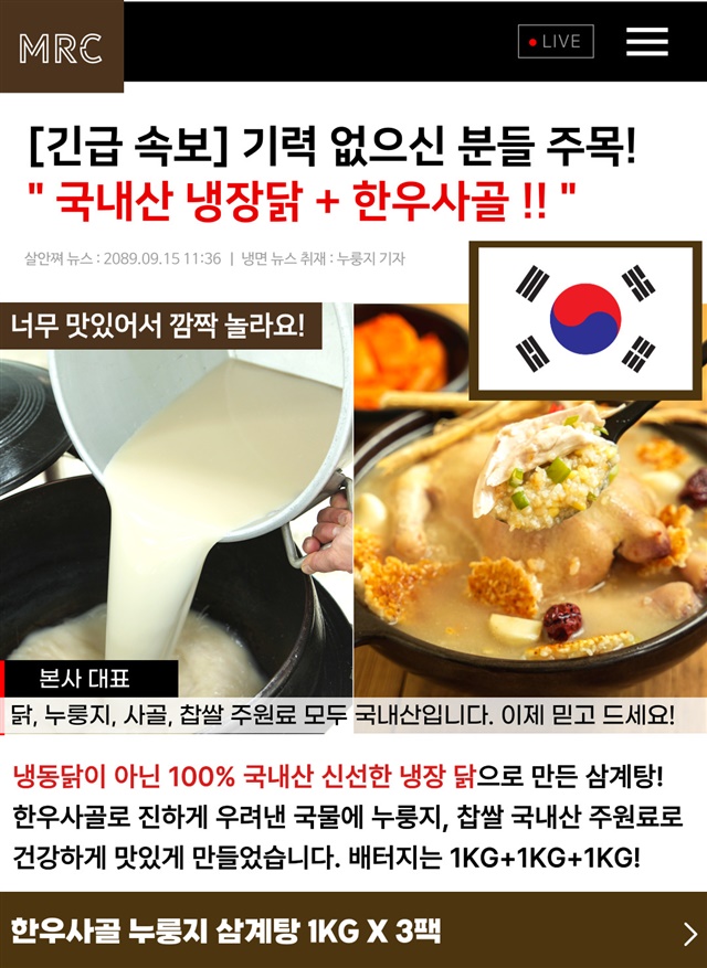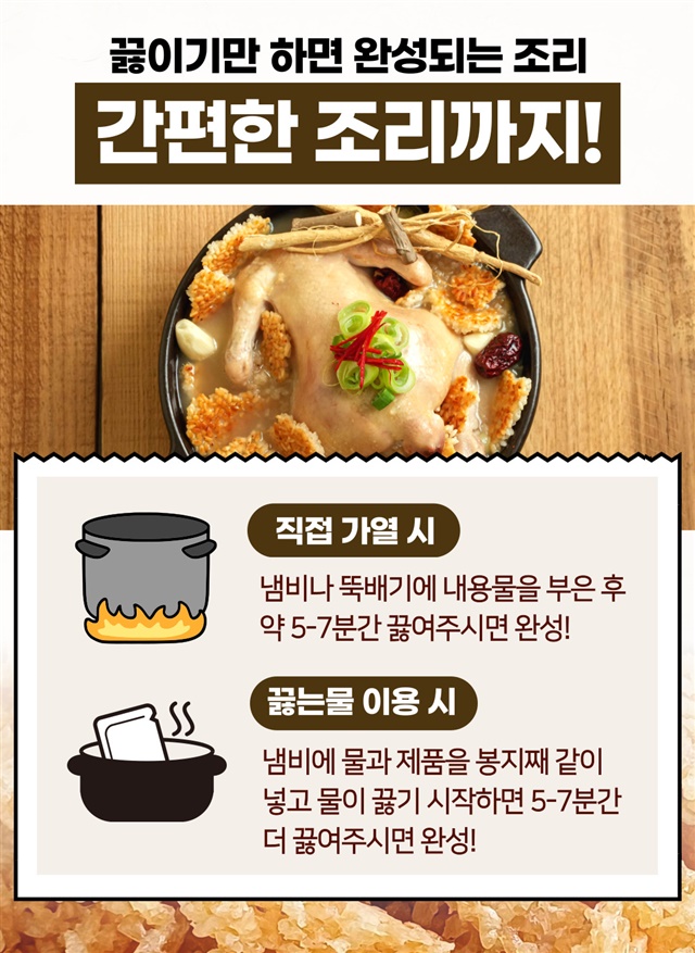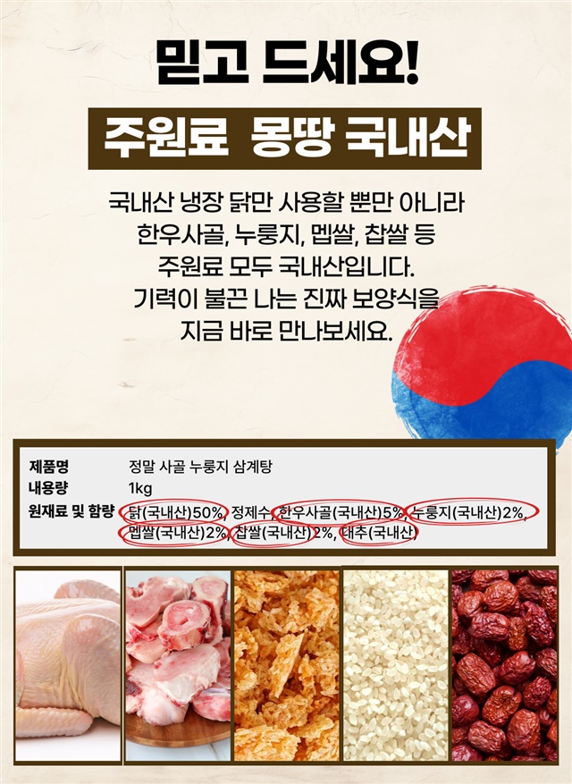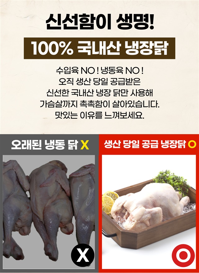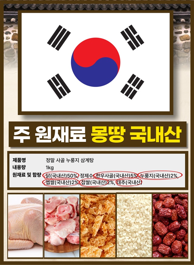 100% 국내산 냉장닭으로 제대로 만든 삼계탕