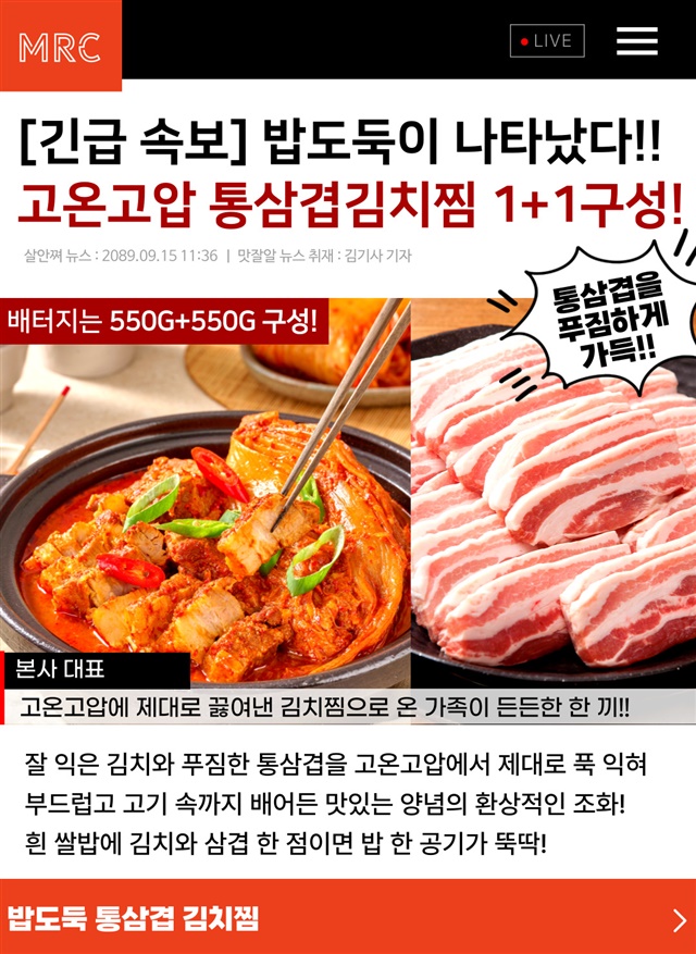 [통삼겹김치찜] 배터지는 밥도둑 통삼겹살 가득 김치찜 550G + 550G