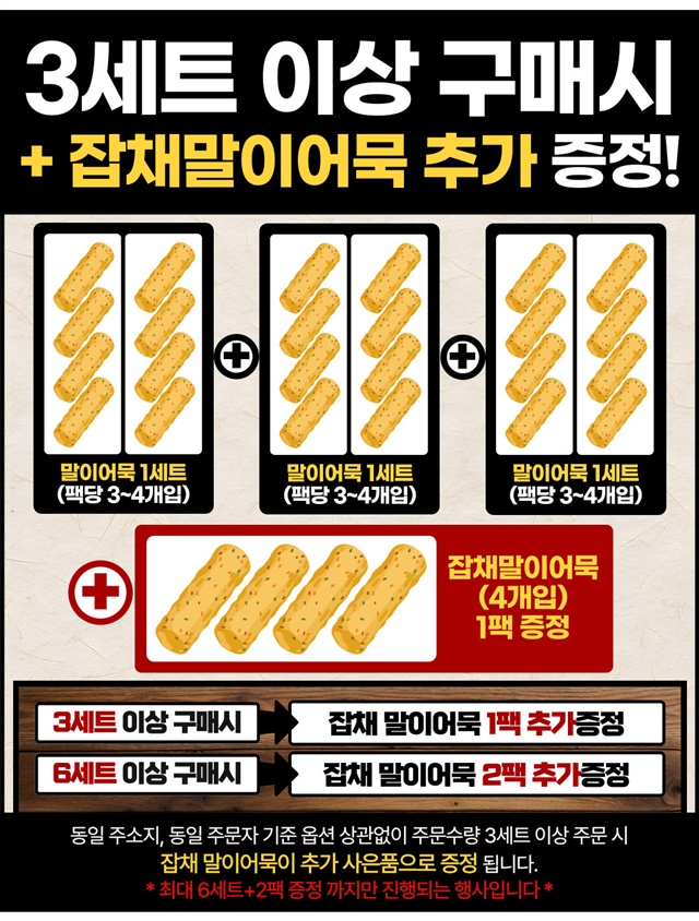 3세트 이상 구매시 잡채말이어묵 1팩 덤 증정