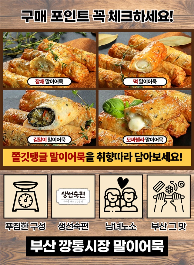 [부산 깡통시장] 말이어묵 1+1 구성 골라잡기 [잡채말이/떡말이/김말이/모짜렐라 말이]
