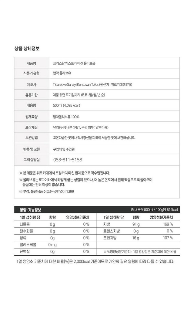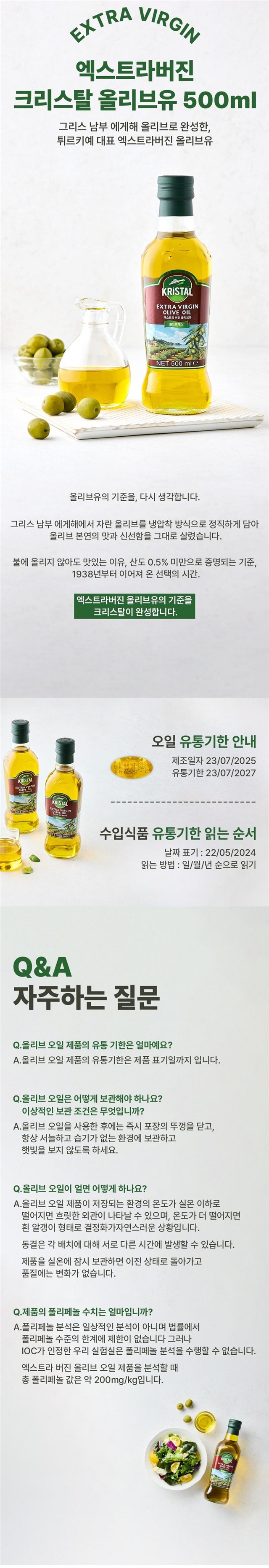 산도 0.5% 미만 엄선한 엑스트라 버진 올리브유