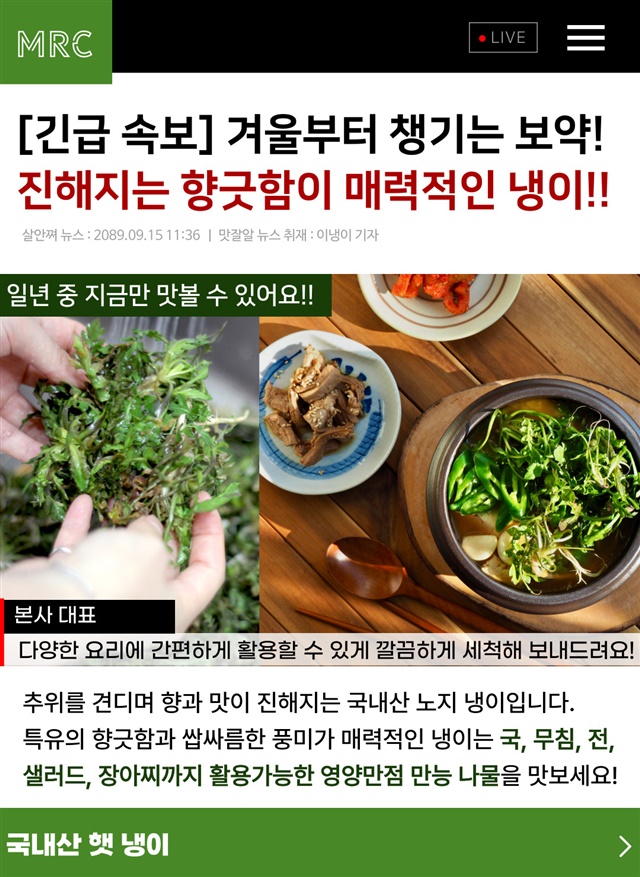 입맛을 돋구는 향긋함! 영양만점 노지 냉이 500g