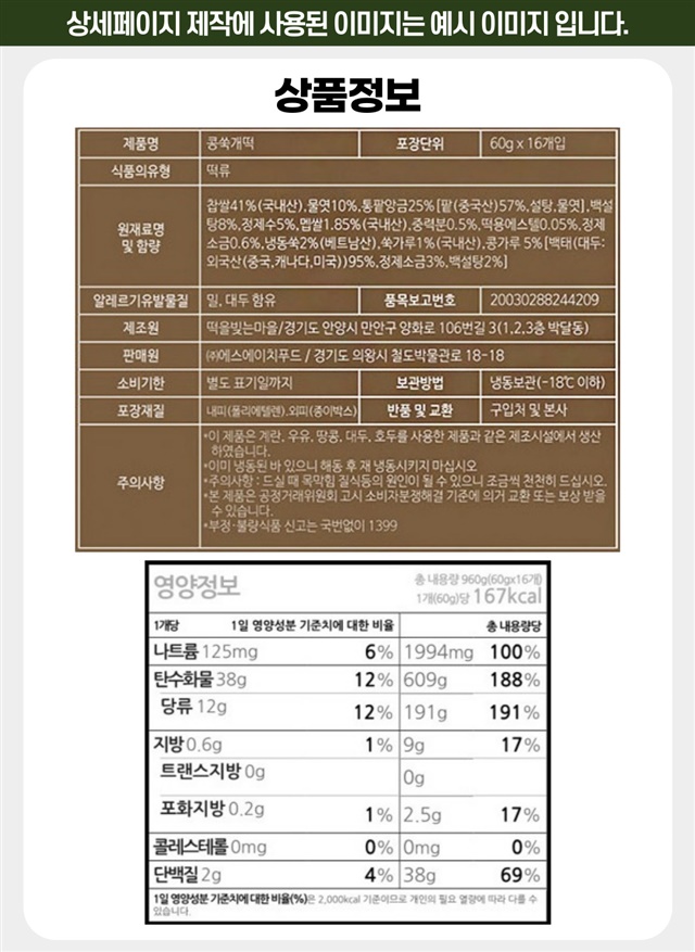 100% 국내산 찹쌀로 만든 쫀득! 말랑! 콩쑥개떡 (60G X 16개입) 한박스 구성