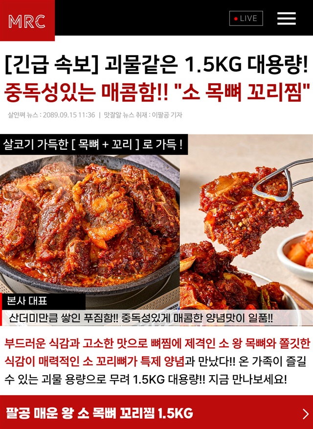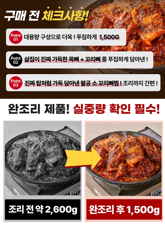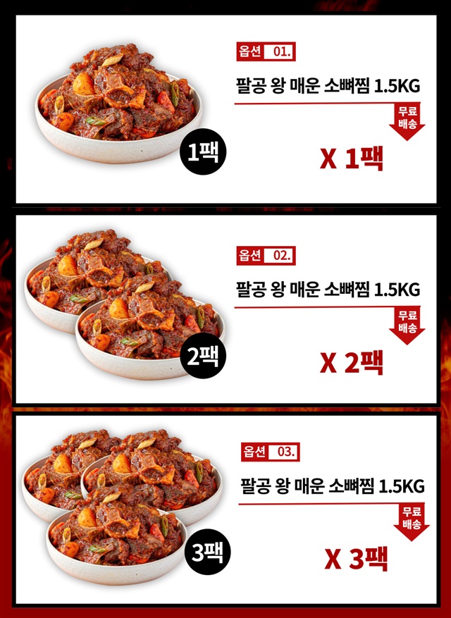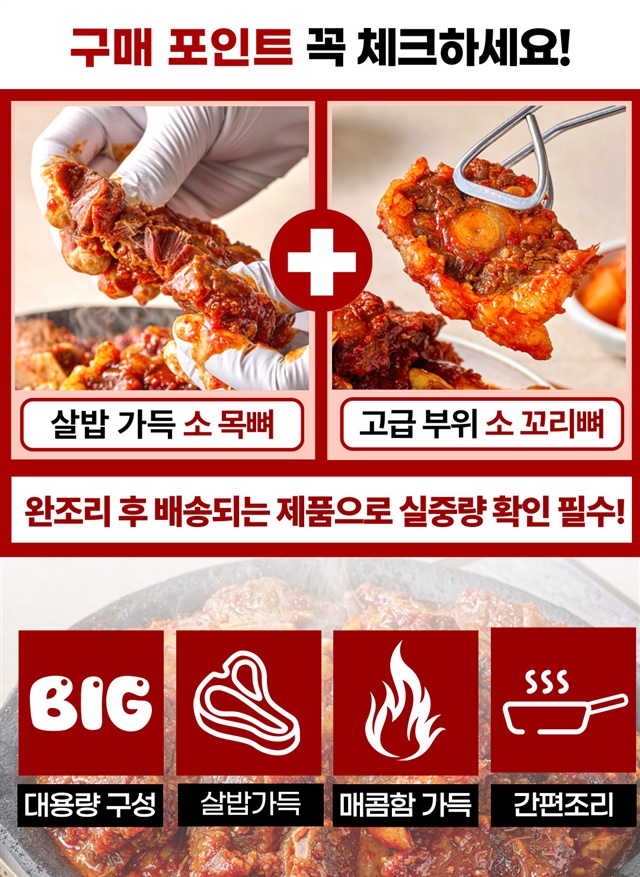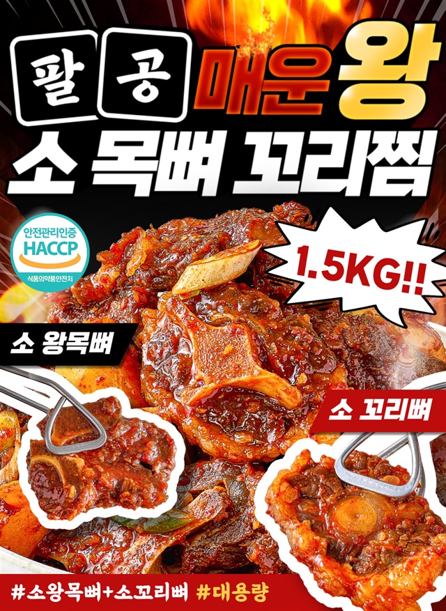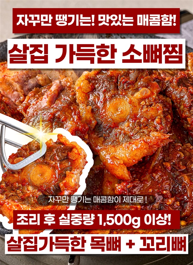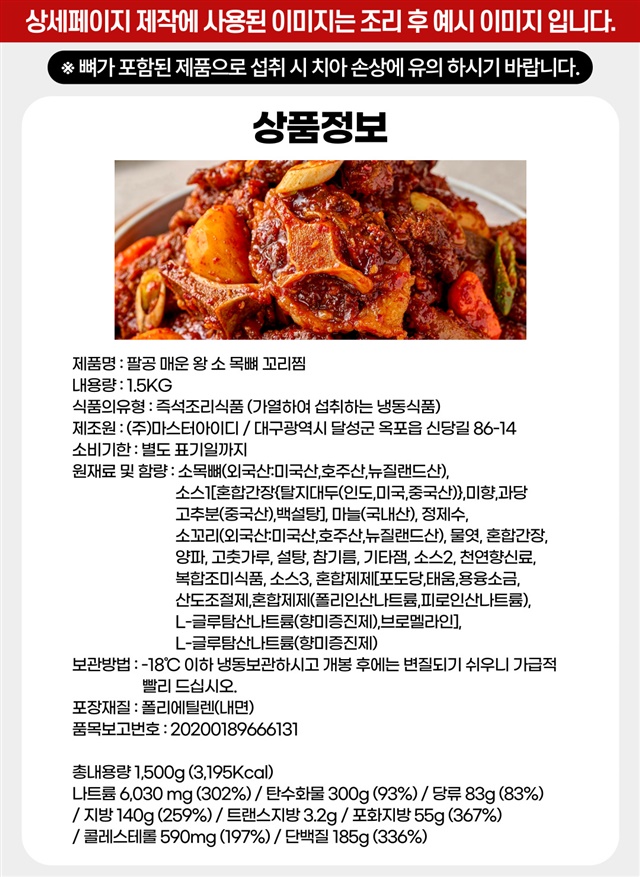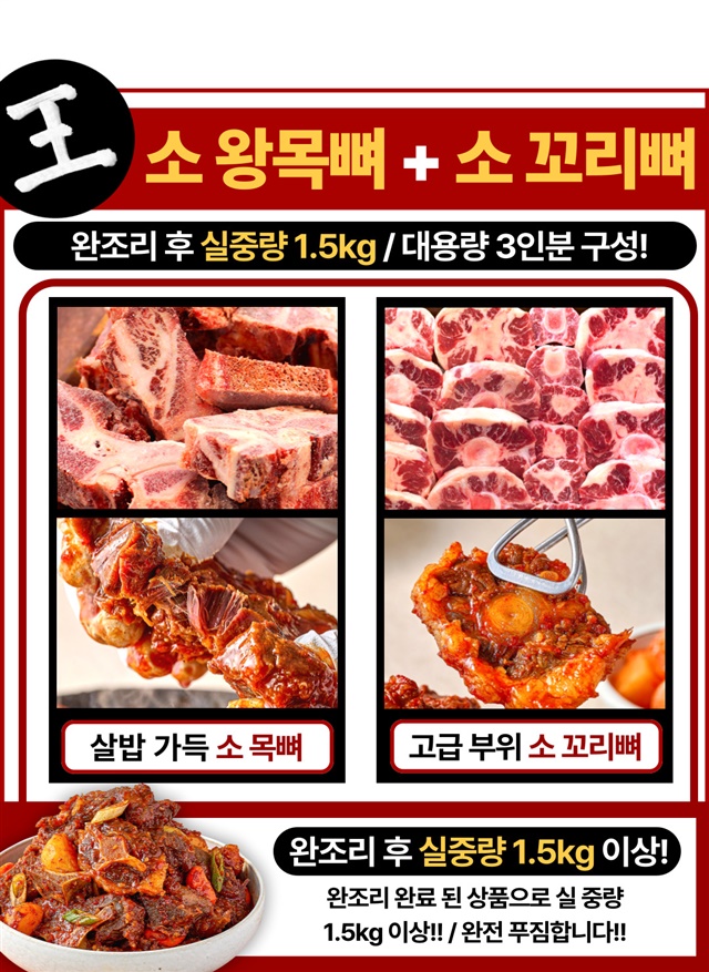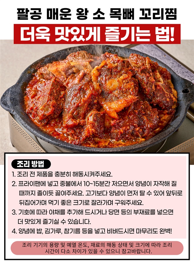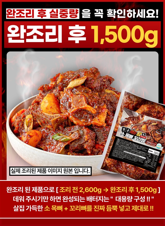 [완조리 후 1,500G] 팔공 왕! 매운 소 목뼈+꼬리찜 대용량 X 1~3팩