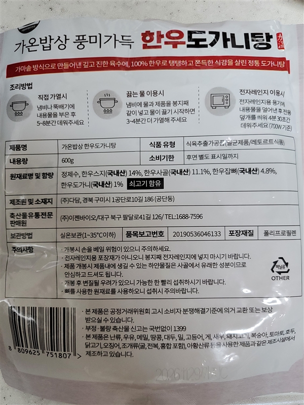 자취하는 아들녀석에게 보내 줬더니~ 아주 맛나게 잘 먹었다고 하네요^^ 이쯤되면 도가니탕 광팬이 돼버렸네요!! 굿입니다!!