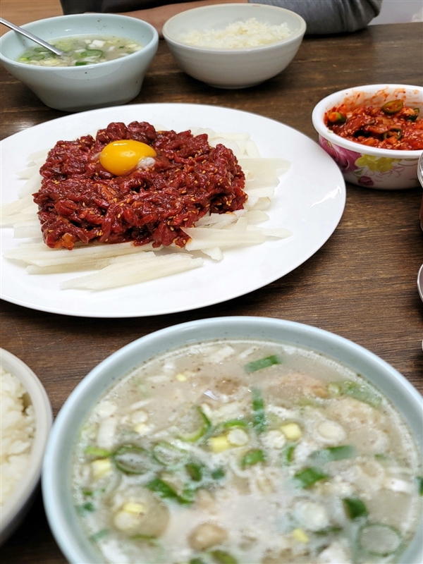 집에서 아내가 몇시간을 정성껏 끓인 사골 육수의 맛!! 벌써 4팩 다먹고 재구매해 또 식사중... 육회 한접시와 함께하니 유명 설렁탕집에 온 느낌!! 최고입니다!!