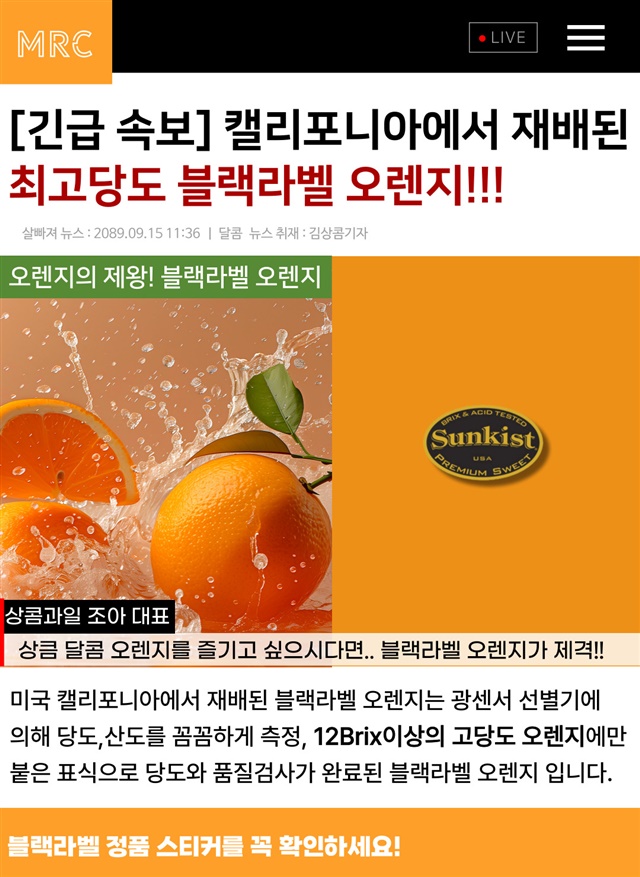 고당도 12birx이상 당도보장=블랙라벨 오렌지