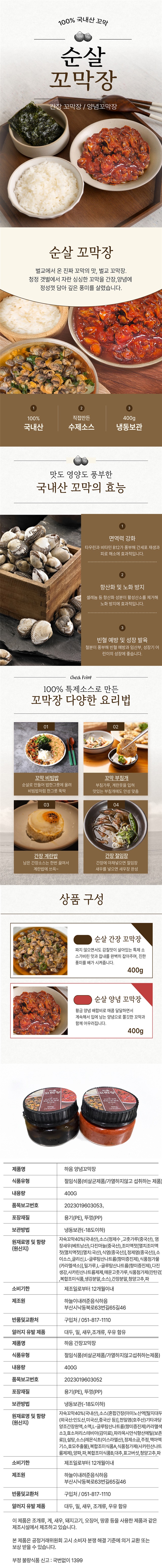 100% 국내산 꼬막 벌교 순살 꼬막장 400G X 2통 (간장/양념)