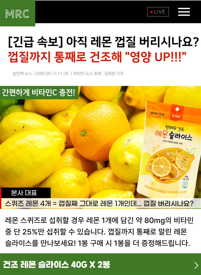 첨가물없이 100% 레몬만 껍질까지 통째로 건조