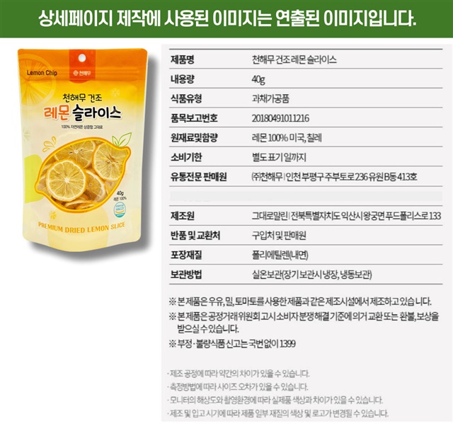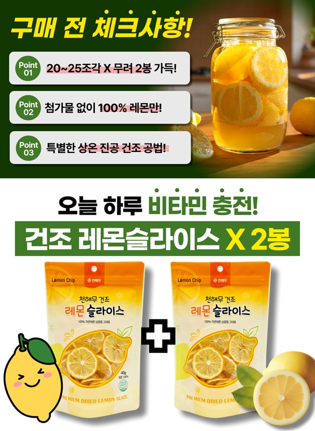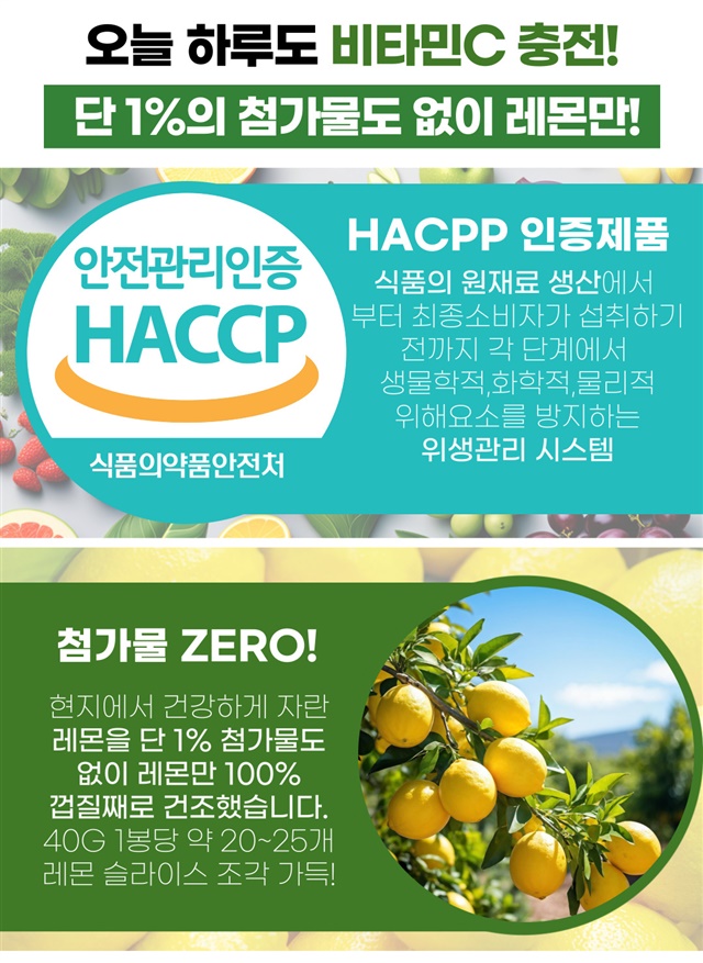 [건레몬] 첨가물없이 100% 레몬만 건조한 레몬 슬라이스 40G X 2봉