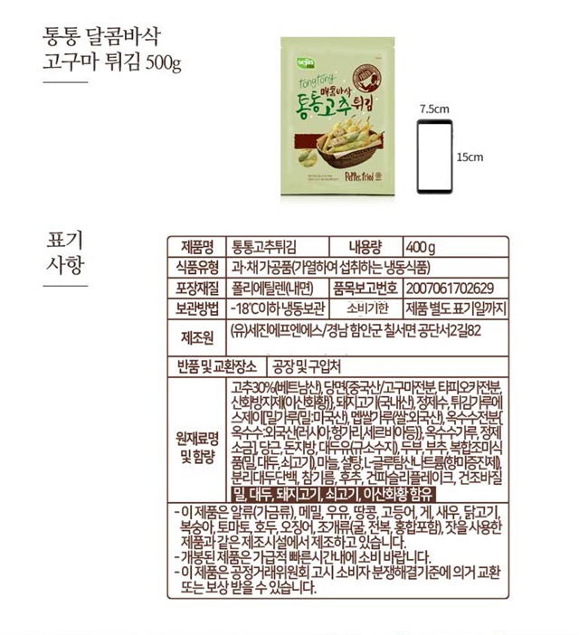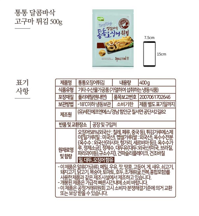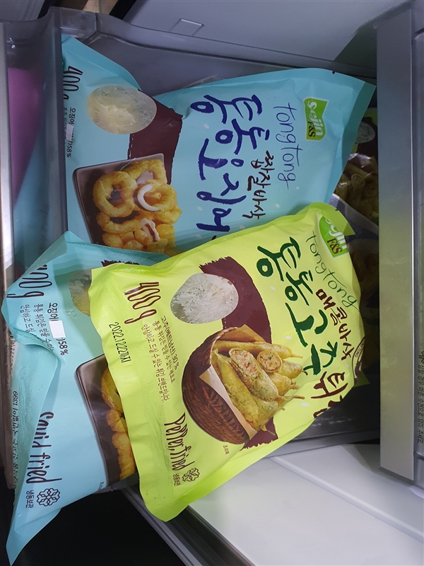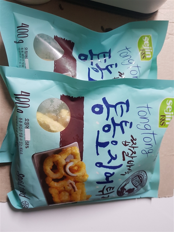 애들방학이라서 간식겸 주문했는데 배송은 좀 느렸지만 안전하게 왔네요 오징어가 엄청두툼하고 바삭바삭 엄청맛있네요 180도로 10분정도 돌렸어요 바삭하고 노랗고 짭짤해요