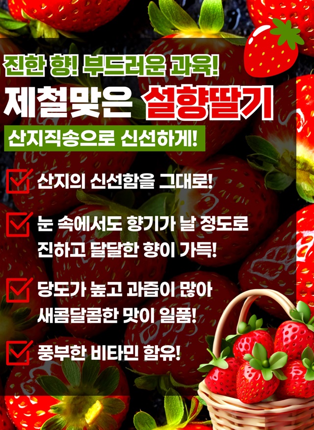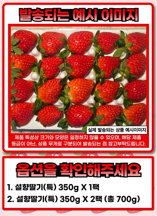 입안 가득 퍼지는 고당도 새콤달콤! 설향 딸기 350G (특)