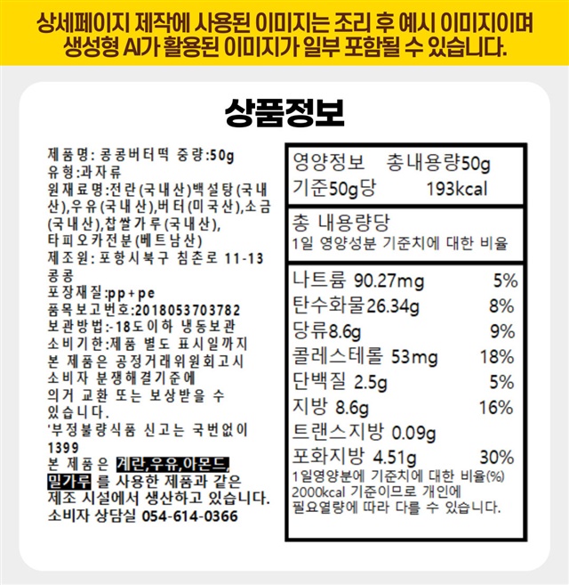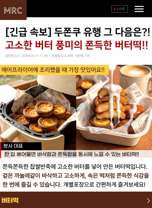 [ X 2배 커진] SNS 핫템! 에어프라이어 간편 조리 2배커진 버터떡 50G X 10개입