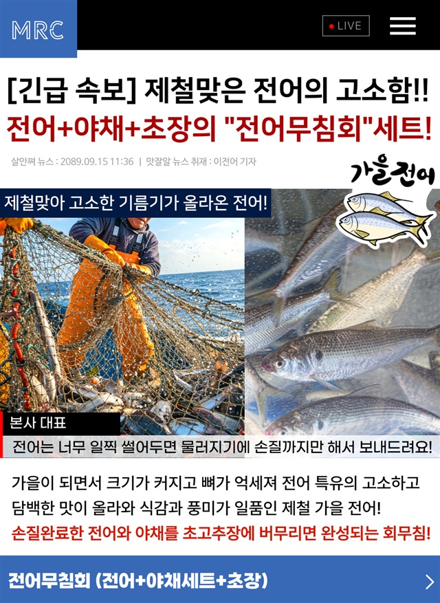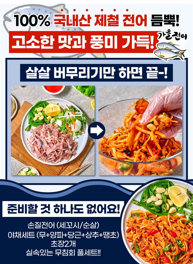 조업즉시 손질한 당일바리 죽도시장 가을전어 회 무침 풀세트 2~3인분 (세꼬시/순살)