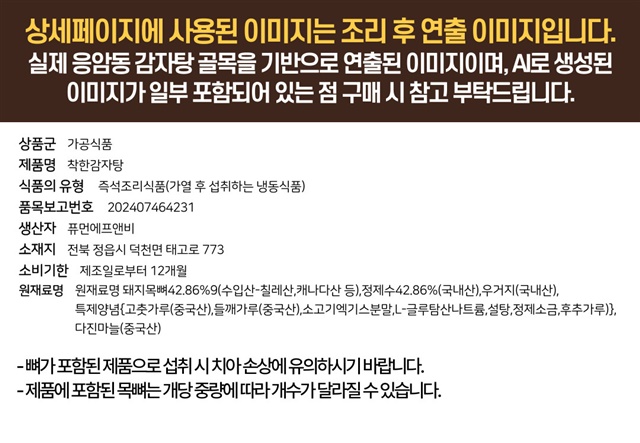 양도 많고 국물 깔끔하고 가격 착하고 가성비 최곱니다 두번째 구맨데 역시나 맛잇네요 감자탕 땽기면 또 구매할겁니다