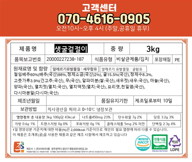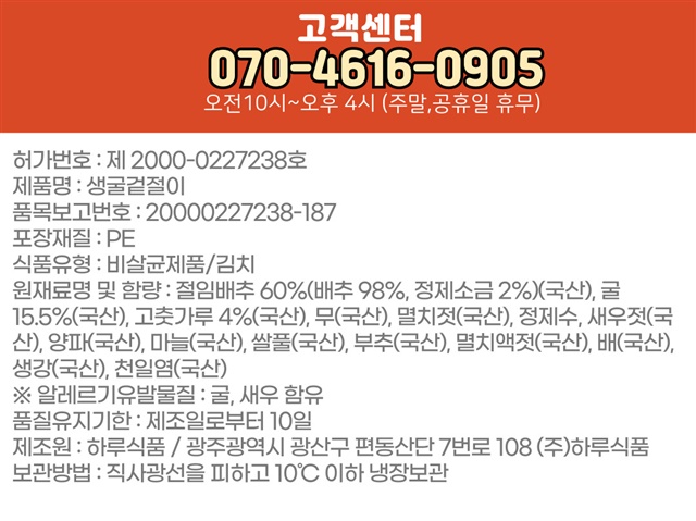 후후 1인가구 2kg 주문했습니다 잘 한듯 양이 적당할 듯 합니다~! 김치에서 시원한 굴향 가득 보이시져 굴 많은거 후후 김치와 잘 어울리네요~! 시원한 맛 ㅋ 고구마랑 호로록 ㅠㅜ 맛있음...