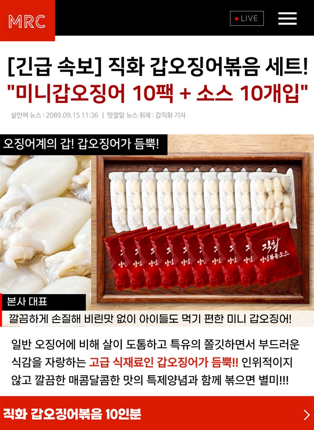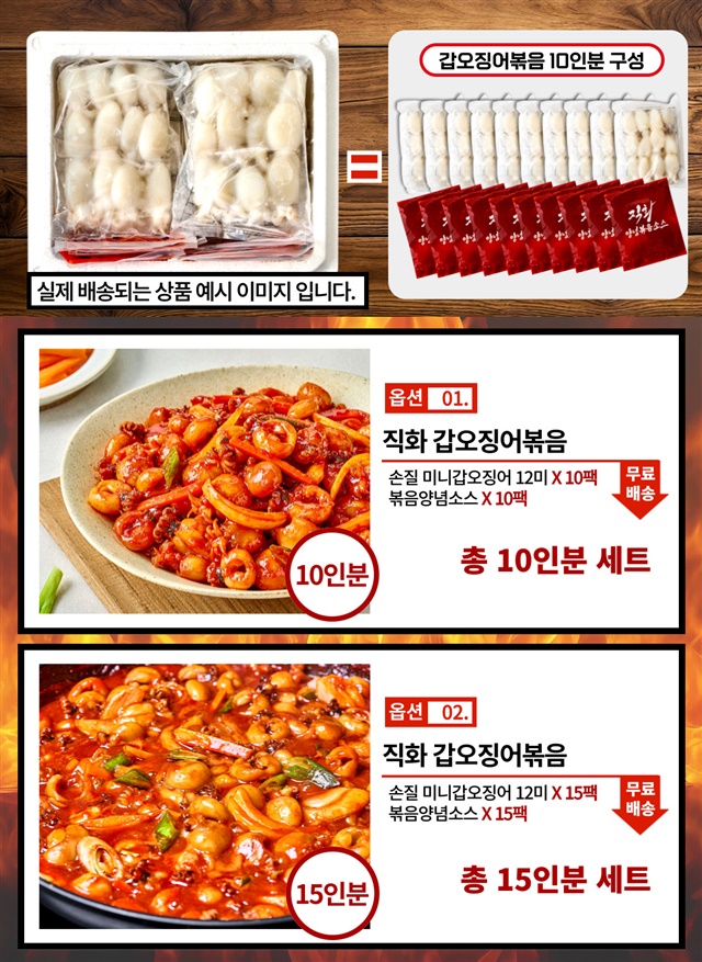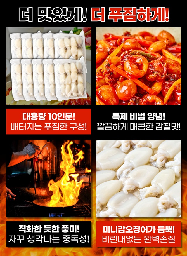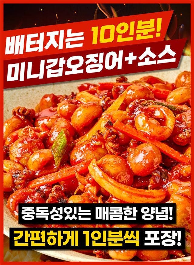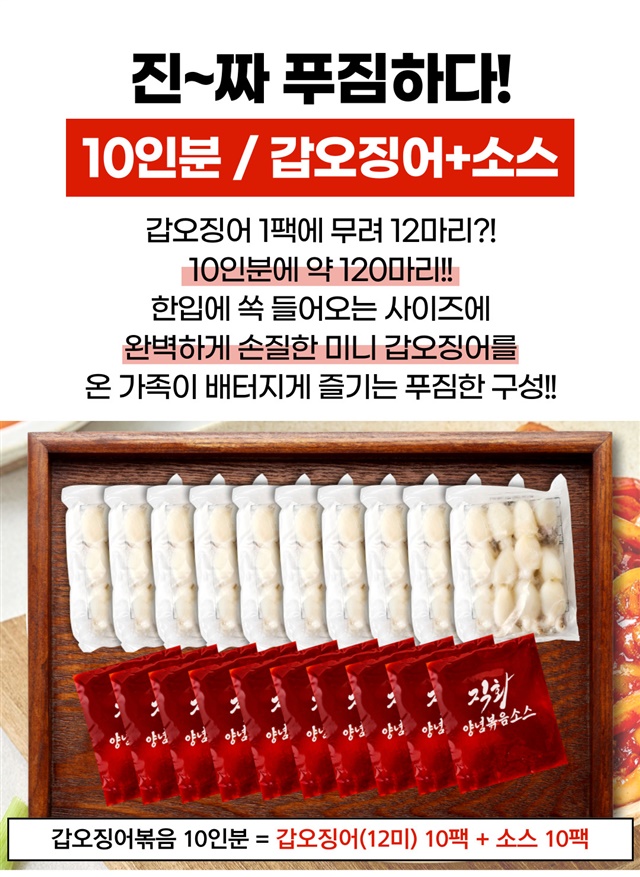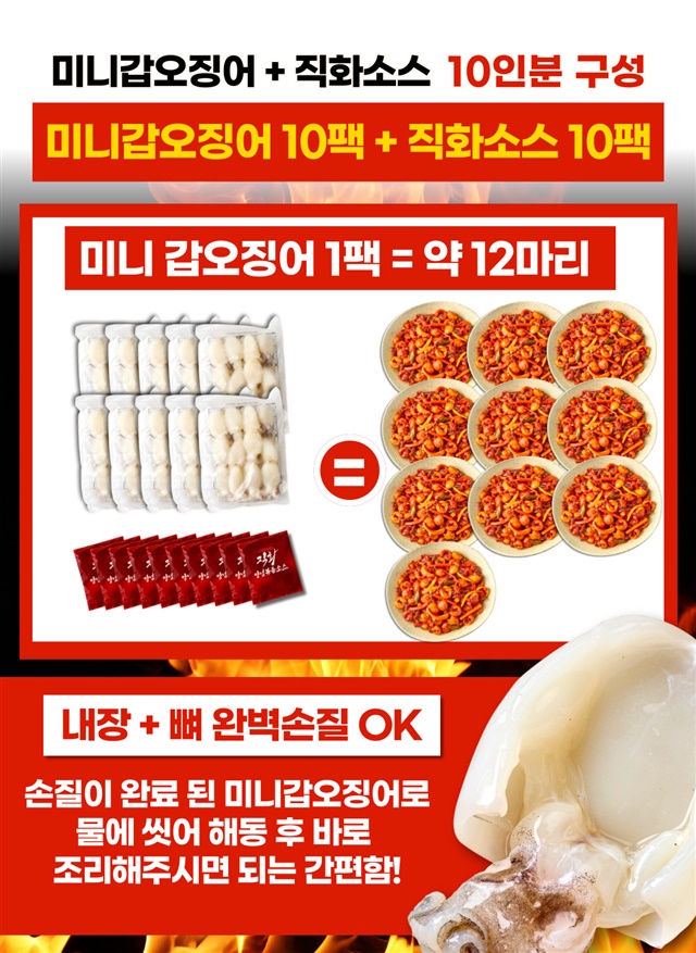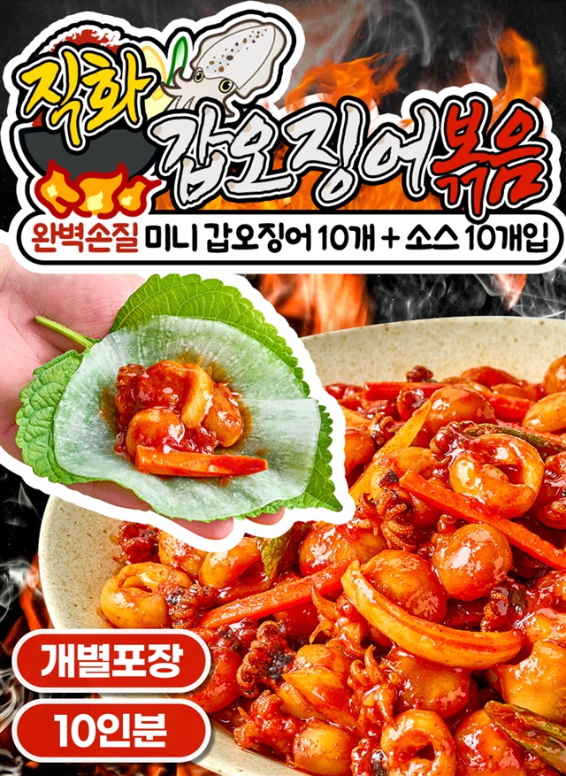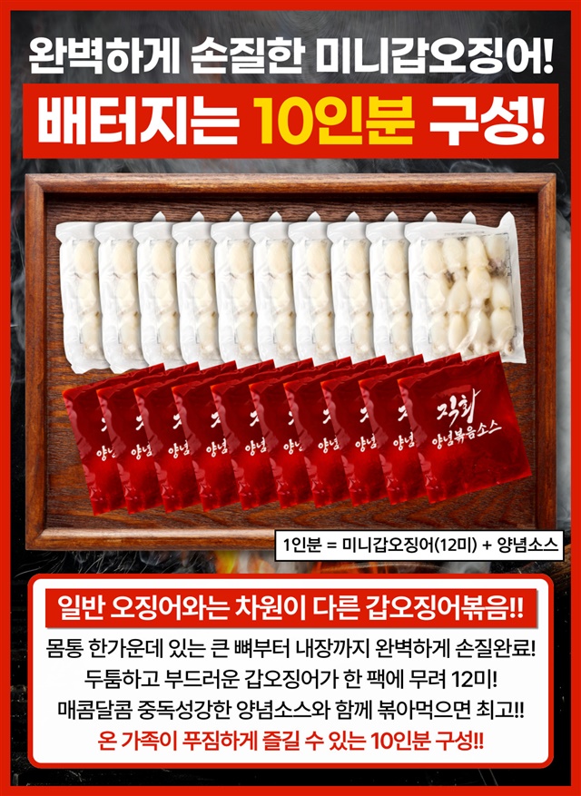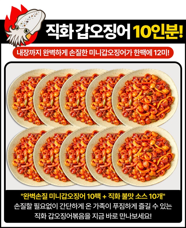 완벽손질 OK! 미니 갑오징어 직화 볶음 10인분 풀세트 구성 (미니갑오징어 10팩 + 직화소스 10팩)