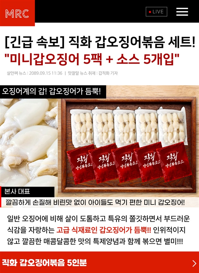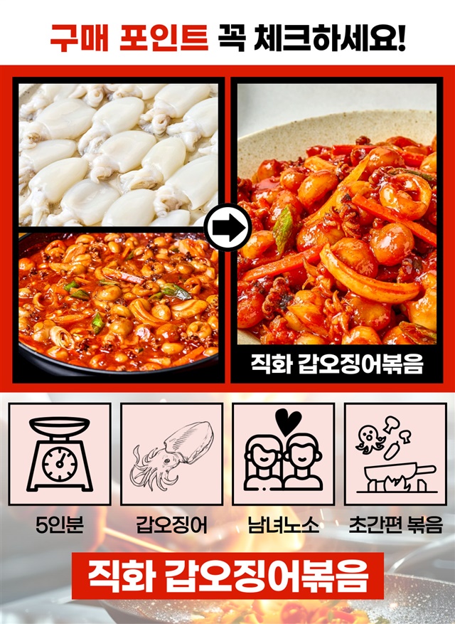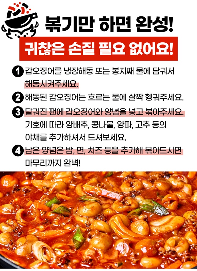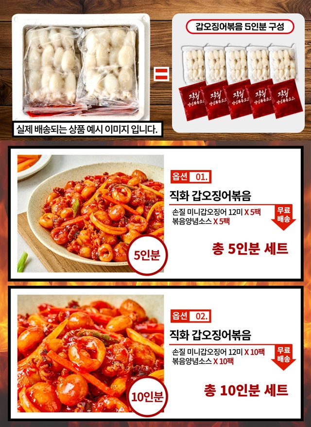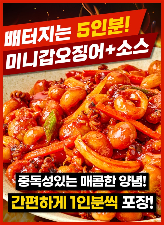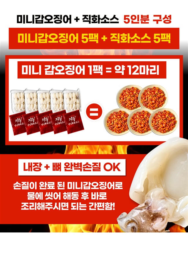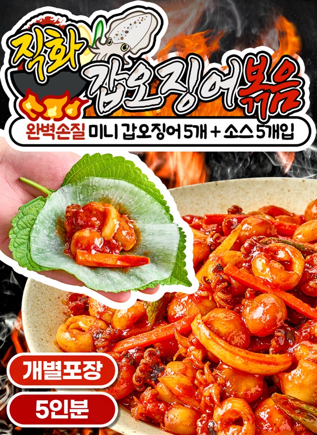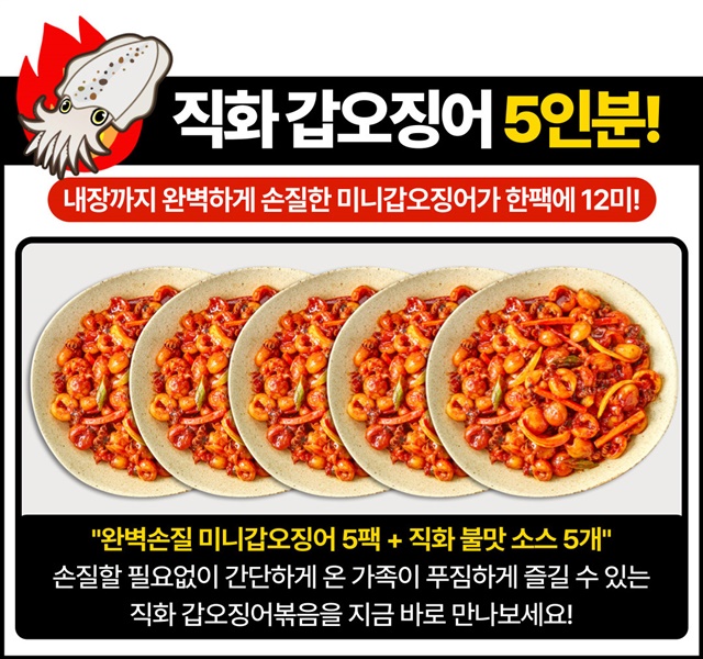 완벽손질 OK! 미니 갑오징어 직화 볶음 5인분 풀세트 구성 (미니갑오징어 5팩 + 직화소스 5팩)