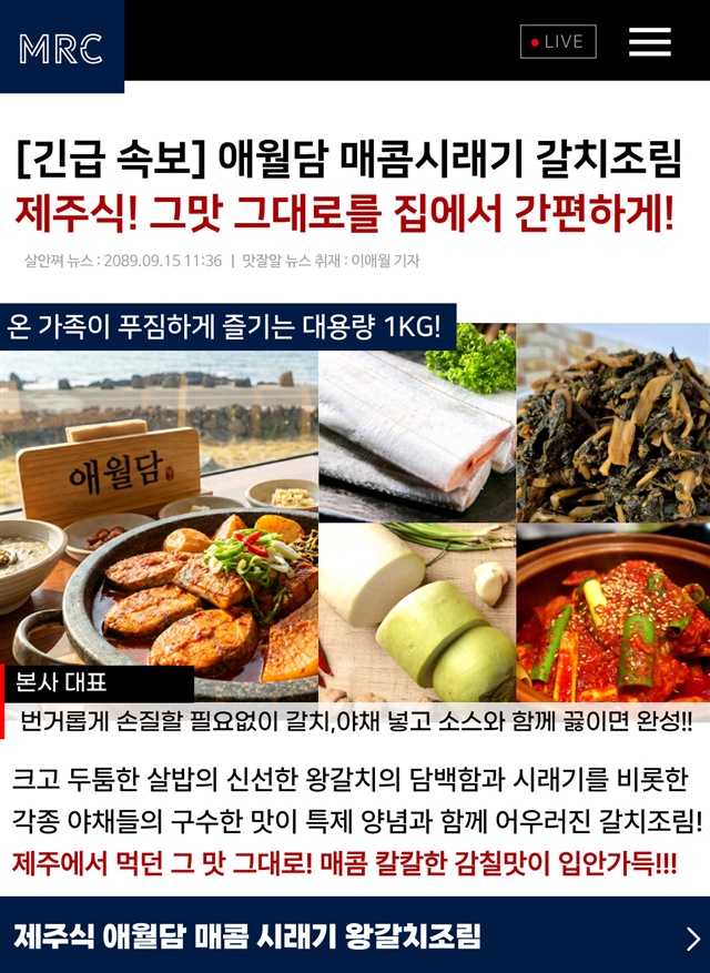[제주 애월담] 제주식 왕 갈치로 만든 매콤 시래기 갈치조림 푸짐한 1KG