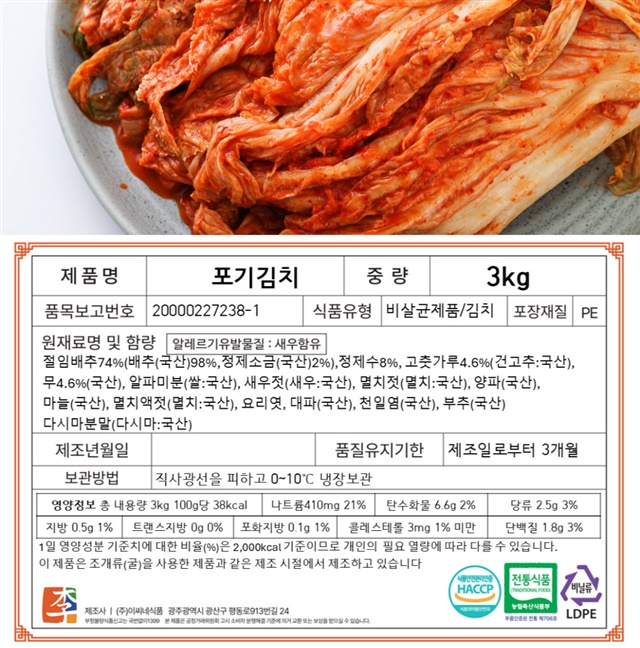 [100% 국내산] 당일담근 전라도 포기김치 3kg/5kg/10kg