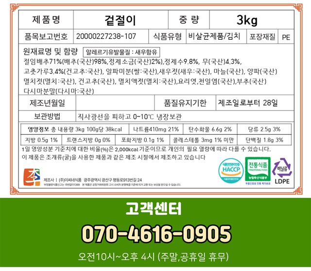 오자마자 먹엇는데요 깔끔하고 넘 맛있네요!! 아삭아삭 넘 맛잇어요 김치 사먹는거 맛없을꺼라고 생각햇는데 국산에 안심하고 맛잇게 먹을수 잇을꺼같아요 !!